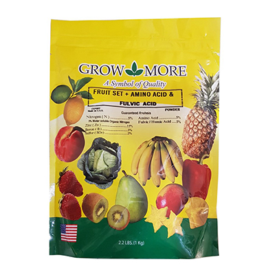 کود فروت ست گرومور محصول گرومور کشور امریکا میباشد که دارای آمینو اسید و هیومیک اسید و فولیک اسید و ازت و روی و بر است است که برای گیاه بسیار موثر و باعث کاهش ریزش شکوفه و تبدیل آن به میوه میشود.