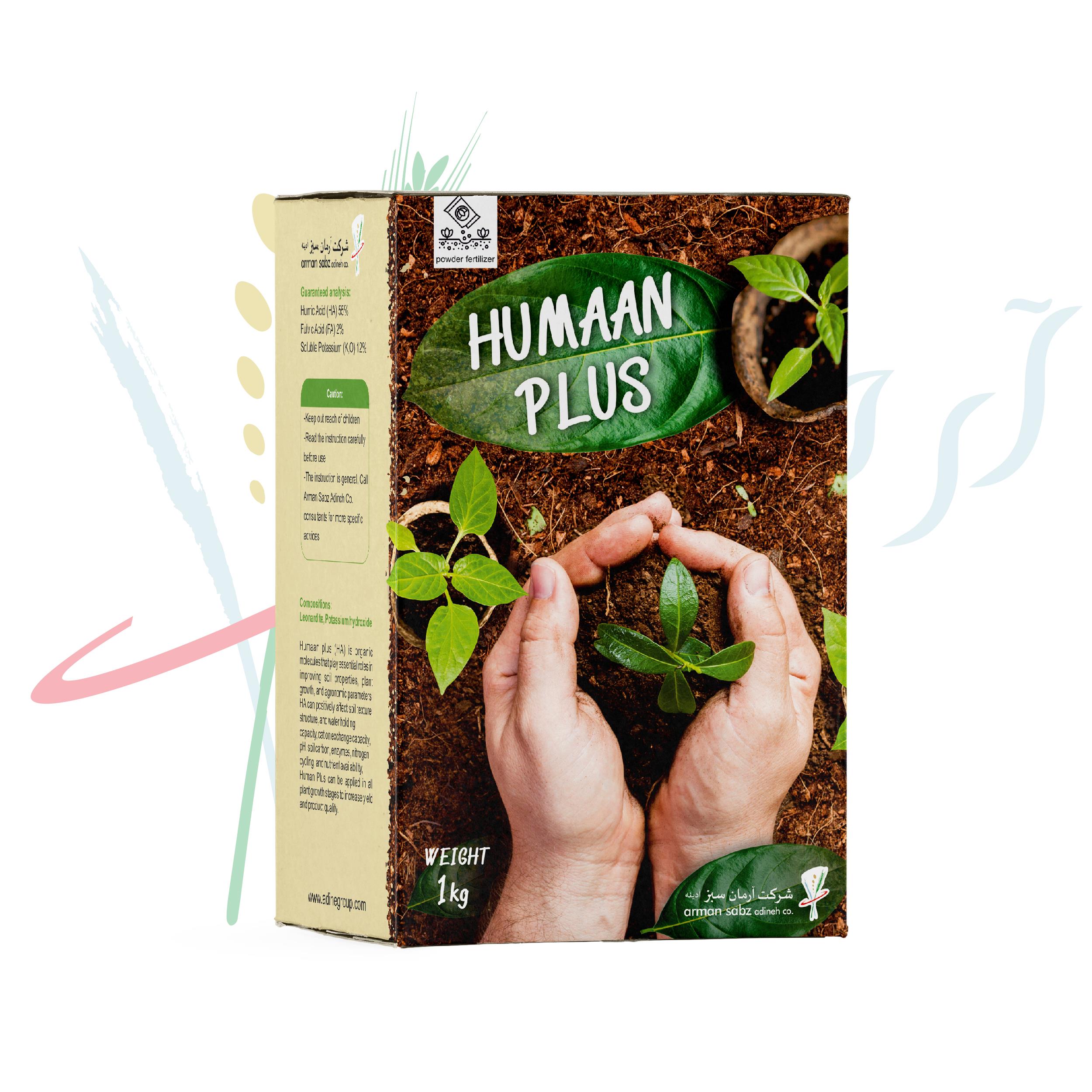 هیومان پلاس یا هیومیک اسید پودری دارای 55 درصد هیومیک اسید و 12 درصد پتاسیم است که در فرآیند استخراج این محصول به هیچ عنوان از ترکیبات حاوی سدیم استفاده نشده است.