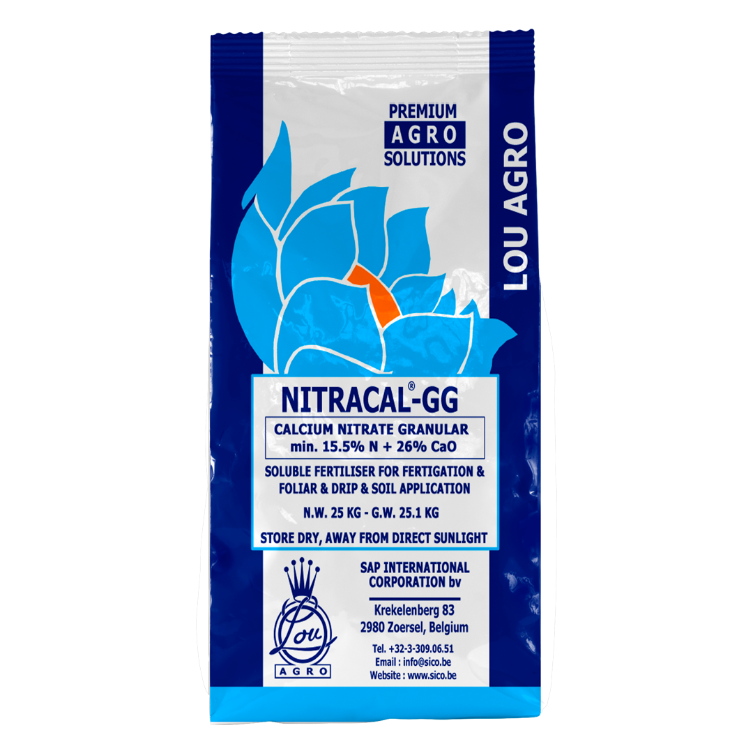 NITRACAL GG- با تامین همزمان نیتروژن و کلسیم سبب افزایش کیفیت میوهها میشود. این کود علاوه بر کمک به جذب بهتر کلسیم به داخل پیکره گیاه، امکان جابجایی کلسیم در داخل گیاه